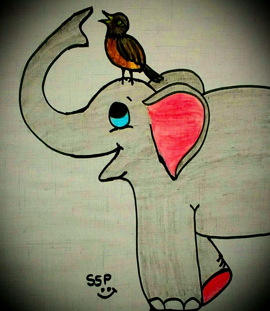 “Mina, the myna, helps Bhunte by picking up the ticks from his body where he can’t reach to scratch them off with his trunk and tail. Mina and Bhunte are the best buddies. When Mina is busy picking up the ticks- he takes her for a ride”