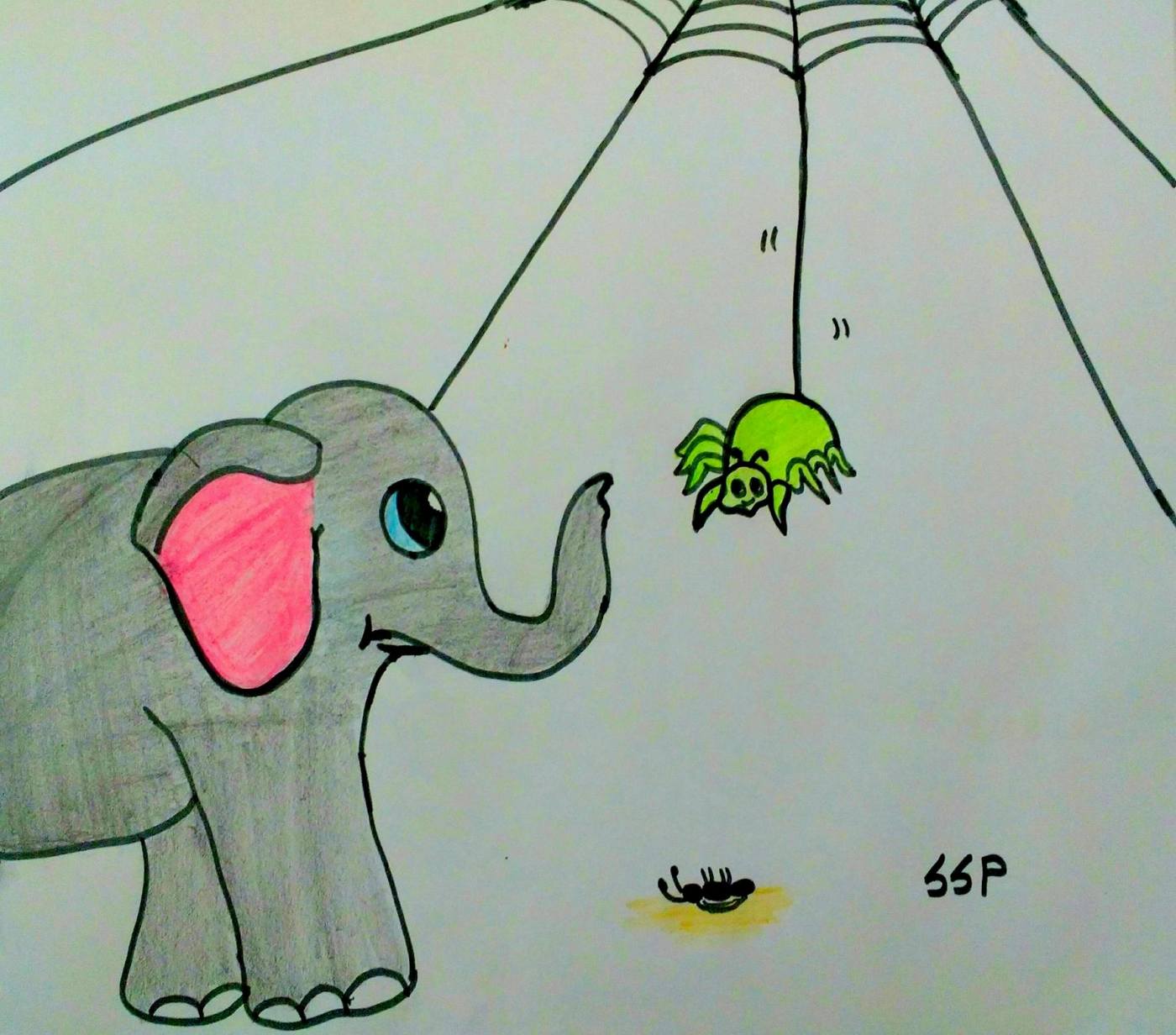Bhunte got this habit of wandering here and there when his aunts are not keeping their eyes on him. He always gets bewildered by the diverse life forms in and around his abode. On his way, he saw a wasp entangled in the threads and lying helpless. As he was observing carefully- he heard-“Hello Bhunte, I drop my food. Apology”. He got surprised, he inspected everywhere. Behind him, in front of him, below him- but could not see anyone. But when he saw above- he got startled. He saw a spider hanging by the thread and smiling at him. Bhunte also saw that wonderfully crafted web. He smelt his new friend and started moving backward. He trumpeted loud and ran towards his herd. His mom trumpeted back. And scolded him for wandering all alone. But, Bhunte was excited to meet his new friend. And was worried about the wasp!