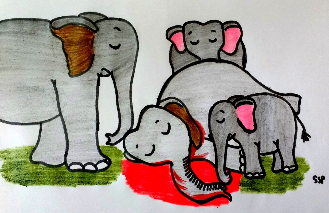 Bhunte’s family got the bereaving news. Their distant relatives lost their grandmother- Kalimaya- 69 years old matriarch. Bhunte and his herd went to console their relatives. Bhunte’s mom sniffed the corpse of Kalimaya. She mourned her death. All the members did. Everyone was bereaved to see her dead. Kalimaya had an immense experience and knowledge about the routes, food, and water. Unfortunately, Kalimaya suffered from the intense intestinal infection- due to the shortage of water during this extreme dry season. She got exposed to parasites and could not defend against it. This was a huge loss to Kalimaya’s herd. Well, elephants do mourn the death of their relatives and families. Yet, we trouble them…