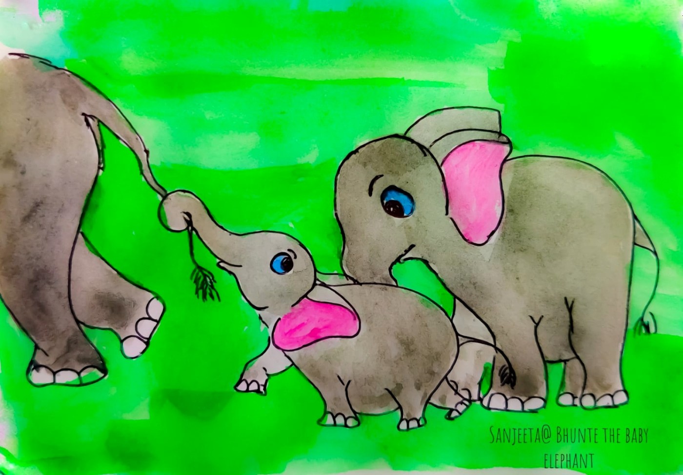 Do you remember that Bhunte’s mom was pregnant? Around 2019. Good news for you all. She delivered a baby a month ago. Bhunte is too happy to find a companion in his home itself. Bhunte did not share this news as he was busy protecting her. Now he is a brother to his sister, Sanu. For a couple of weeks, he was excited to see her around. He was too curious to see such a tiny elephant. He kept on smelling her with his trunk for almost a week. And now, she is as mischievous as Bhunte himself. Bhunte used to get himself dragged by his mother’s tail and Sanu does the same! Well, Bhunte now has to behave like an elder brother. He does his best. Rather he acts his best! He pretends to be a serious brother. He showed an angry face to his sister and puffed air out of his trunk to stop her from playing with his mom’s tail! He loves Sanu a lot! He stands in front of her and guards her when she gets nervous after seeing the spotted deer. Bhunte knows she too is going to make friends with deer and many animals in his abode. Bhunte is confident that Sanu will grow as a brave leader of his family. Thinking all these, he walks valiantly along the side of Sanu! And does not even skid!