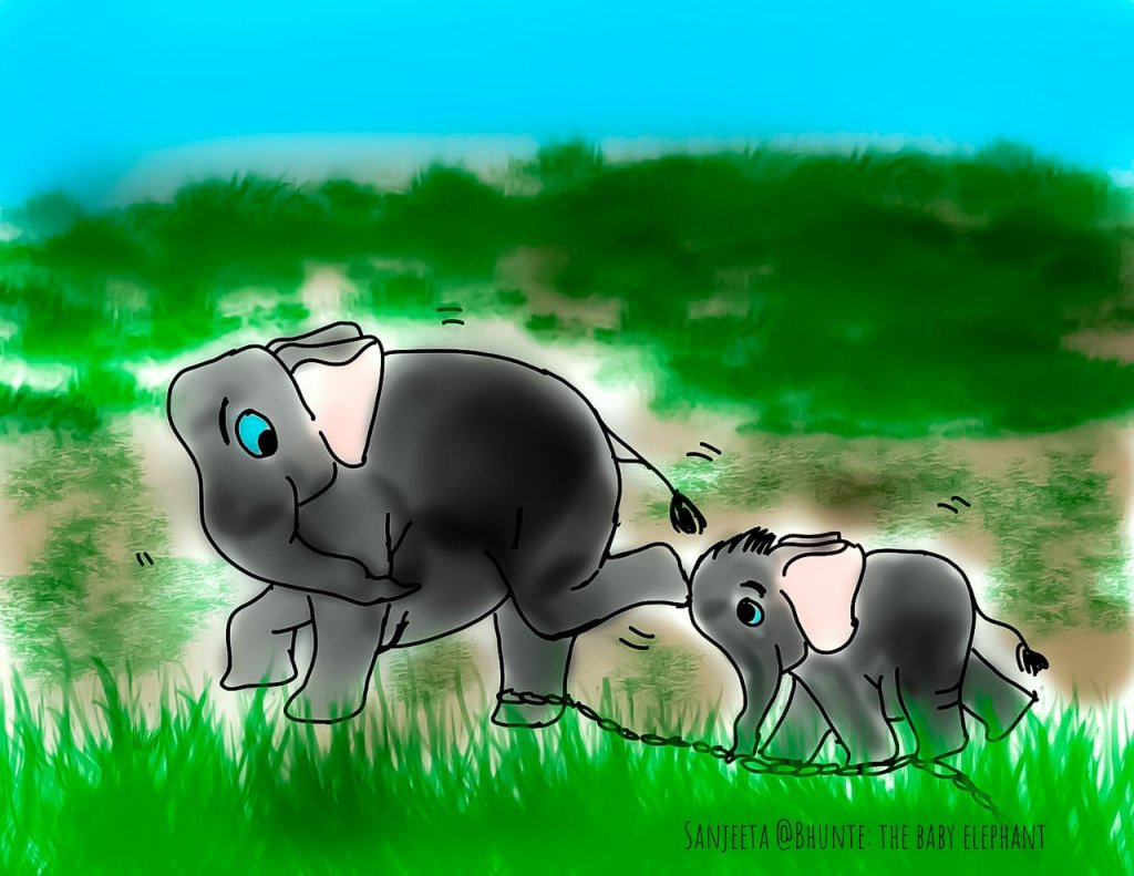 Why most of us love Ganesha (elephant-headed God): because of his cuteness and some mischievousness. Bhunte and his friends are no less than Ganesha. Tinku is a very close friend of Bhunte and stays in the DB kuppe camp of Karnataka. He loves chasing mynas, following mahouts, splashing mud, sitting over his sister and stepping on the mother’s chain (these chains are used to track the semicaptive elephants which are let free in the forest). He started irritating his mother who was heading back to forests after morning meals and medicines in the camp. Tinku kept on stepping on mother’s chain. At one point of time, she got irritated and kicked him right on his head. Tinku learnt his lesson and started walking next to his mother. He certainly must have felt ashamed in front of his friends, who knows…