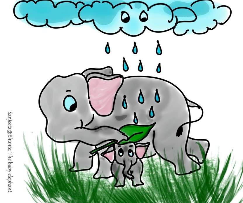 (Well, the story is not the same for all elephants. As the monsoon arrives, the rains are heavier! The erratic climate patterns due to human-related disturbances have started causing either heavy floods or the dry deadliest drought. If this persists, the forests of Bhunte and his relatives may get adversely affected, affecting their survival!)